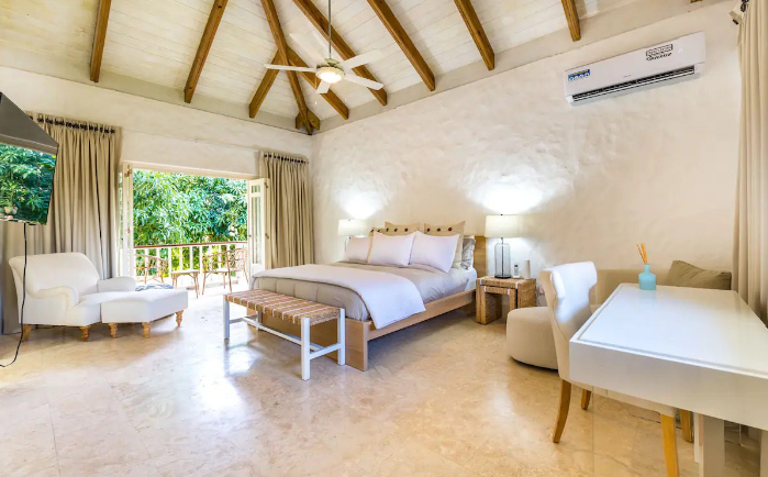 Barranca is a fresh and full of light villa. It is an oasis of peace in Casa de Campo with relaxed architecture that reminds us of the true meaning of what a country house (casa de campo) is with the comforts of today’s living. This two-story villa offers four spacious bedrooms with their own bathrooms and closets, two on the ground floor and two on the second floor. A spacious studio with air conditioning, a full open kitchen and a kitchenette on the ground floor, a pizza oven, alfresco dining, and a large swimming pool are part of the villa amenities. The villa also has a service area in an independent pavilion with laundry, kitchen, and bedrooms for the staff. The gardens are beautiful and mature with a spectacular mango tree that brings fresh shades each afternoon, connecting you with mother earth.